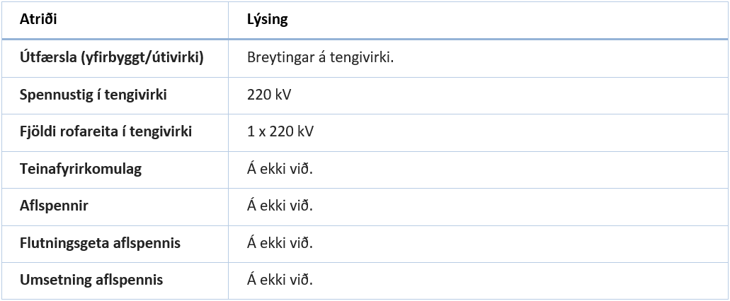 Á ekki við þar sem eingöngu er um að ræða uppsetningu á rofareit inni í aðveitustöð álversins.