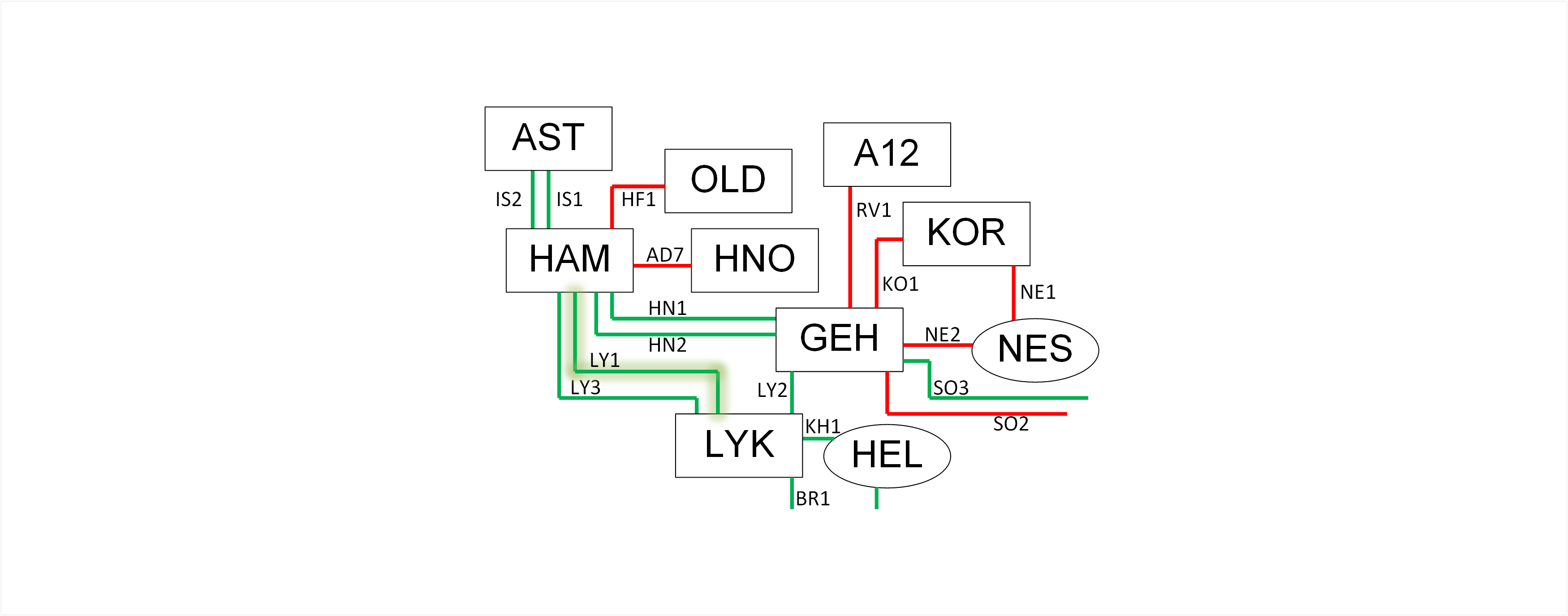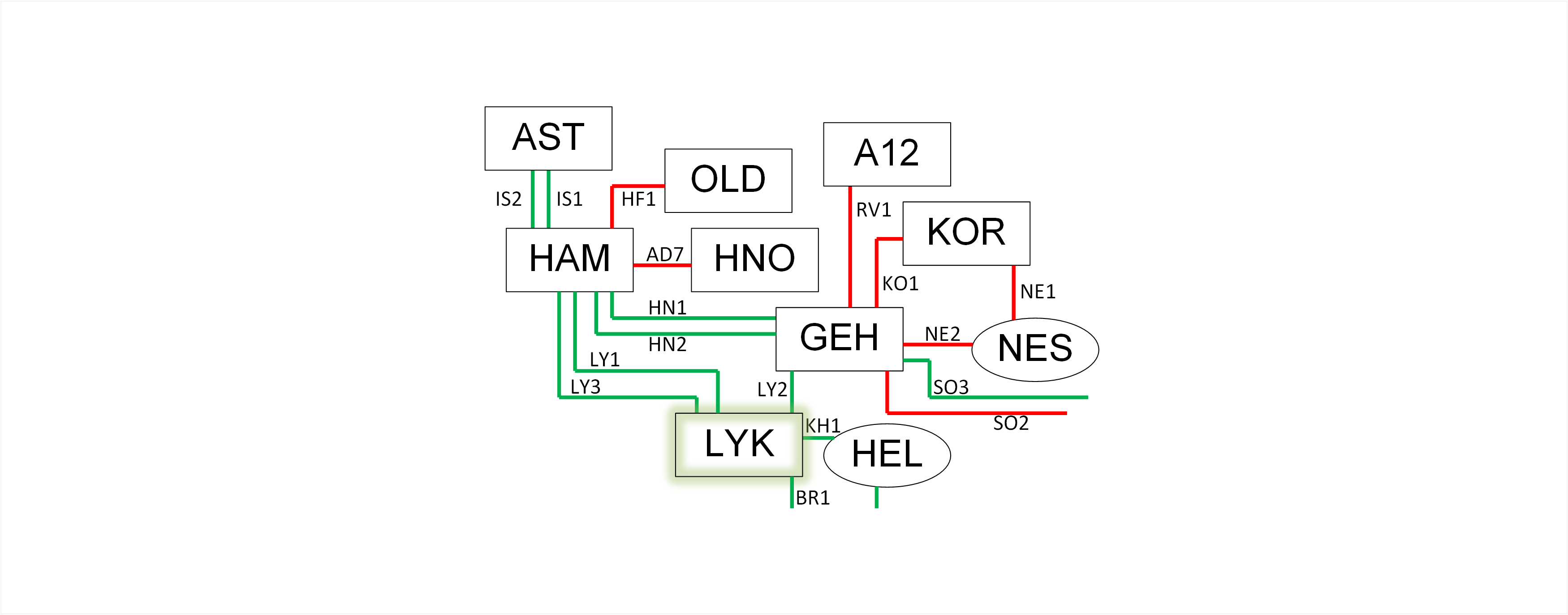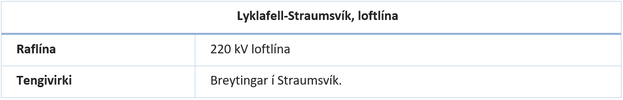Mynd 3-66 sýnir einlínumynd Lyklafellslínu 1 frá tengivirkinu við Lyklafell og að tengipunkti í Straumsvík. Línan liggur að mestu leyti samhliða Búrfellslínu 3 (LY3), að Stórhöfða í Hafnarfirði en tekur þar sveig til Straumsvíkur.