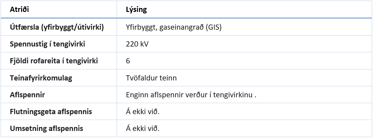 Verkefnið snýr að endurnýjun á tengivirki í svæðisbundna flutningskerfinu á Snæfellsnesi. Verkefnið fellur ekki undir lög um mat á umhverfisáhrifum og er ekki því ekki umhverfismetið.