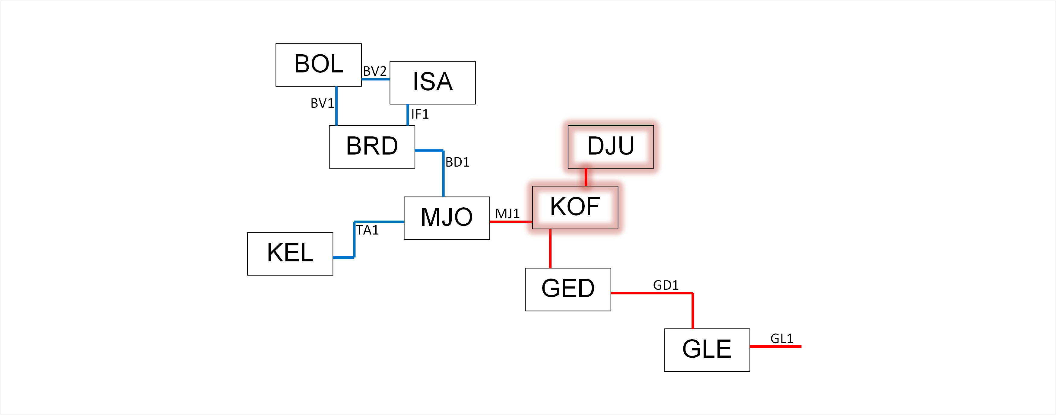 Mynd 3-62 sýnir einlínumynd tengivirkisins og þær breytingar á línum sem verða við tengivirkið.