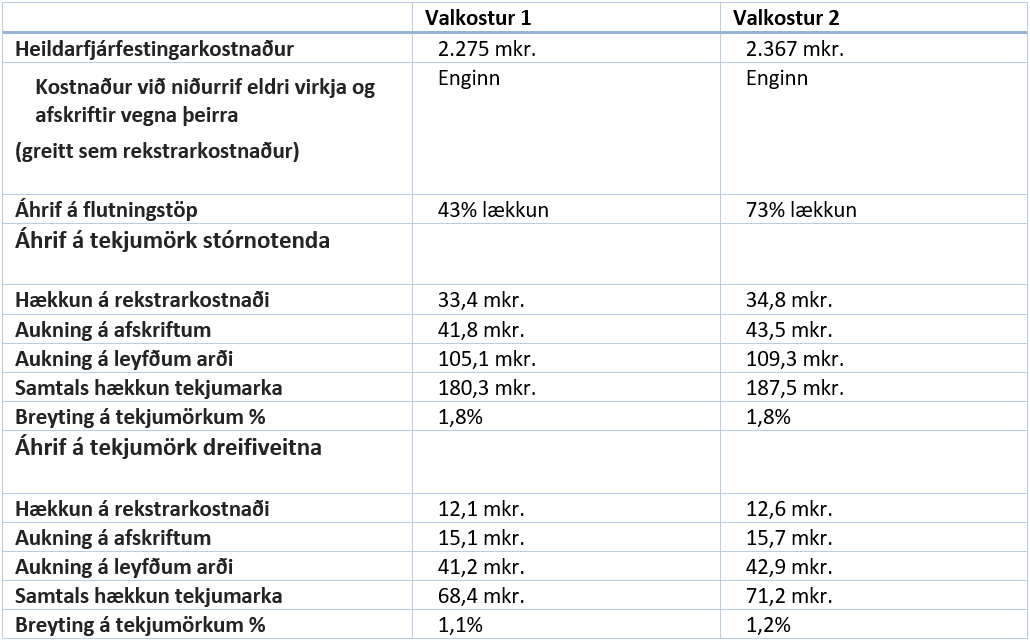 Með greiningum eru áhrif valkostanna á matsþætti hagkvæmni metin og er niðurstaða matsins eftirfarandi: