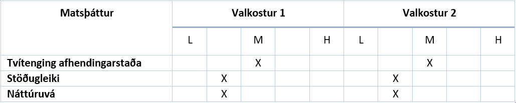 Með greiningum eru áhrif valkostanna á matsþætti áreiðanleika afhendingar metin og er niðurstaða matsins eftirfarandi:
