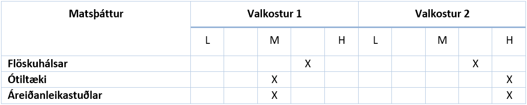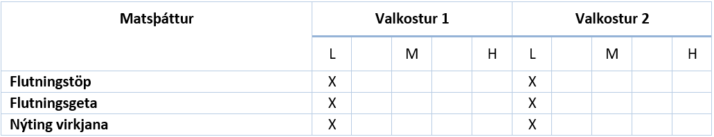 TAFLA 3-208 : Vegamót – Mat á einkennum áhrifa valkosta áreiðanleika afhendingar
