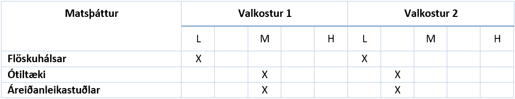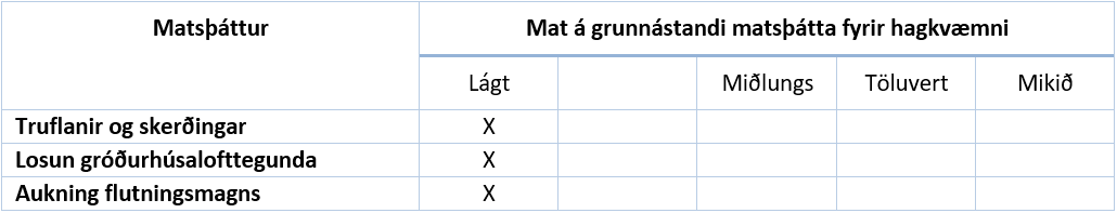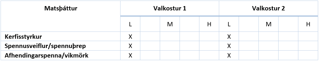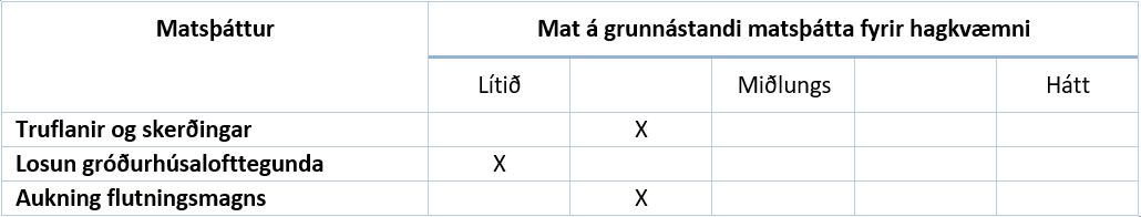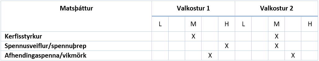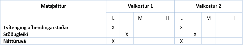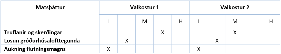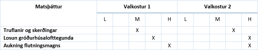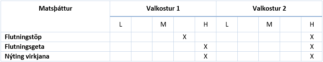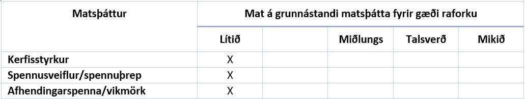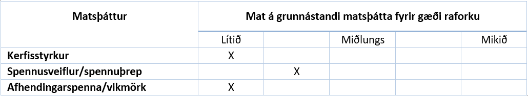 TAFLA 3-210 : Vegamót – Mat á einkennum áhrifa valkosta á gæði raforku