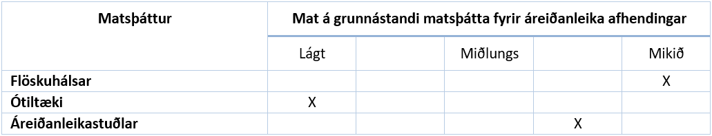 TAFLA 3-207 : Vegamót – Mat á grunnástandi matsþátta fyrir áreiðanleika afhendingar