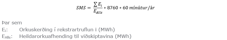 Stuðull um meðallengd skerðingar. Stuðullinn metur hve lengi skerðing hefur staðið yfir miðað við orkuskerðingu og heildarorkuafhendingu. Eftirfarandi jafna gildir um þennan stuðul: